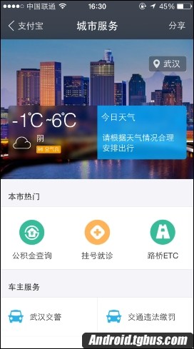 2、當你進入城市服務後,最上面就會顯示今日天氣,如果沒有顯示,需要大家打開定位哦!