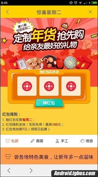 2、點擊首頁中的“紅包駕到”,然後點擊“抽紅包”搶到今天專屬的紅包,小編手氣不錯搶了10元紅包哦;