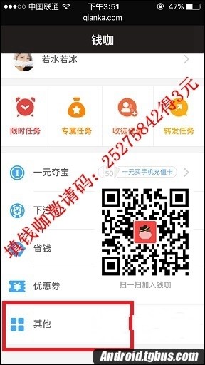 1.打開錢咖,下拉點擊“其他”,如圖: