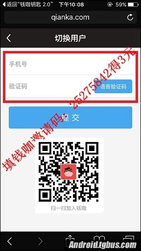 3.輸入要切換賬號所綁定的手機號,點擊“語音驗證碼”後會接到一個錢咖驗證碼的電話,將驗證碼輸入即可,如圖: