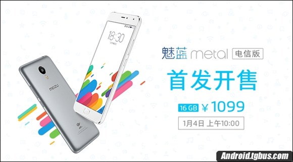 據悉,魅藍metal電信版開賣時間定為1月4日上午10:00,而魅藍metal電信版的售價為1099元。