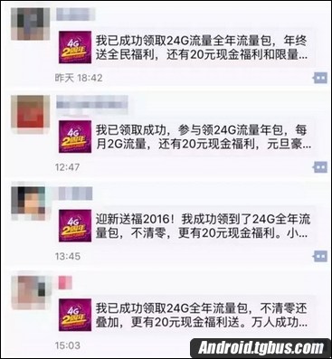 年關將近,想必各種福利都會蜂擁而至,而大多數的網友們往往會對這些“誘惑”沒有一定的抵抗力。但是小編在此提醒大家,凡是讓您輸入個人姓名、手機號等個人信息的一定要學會拒絕。如果您還在質疑24G流量年包是真的嗎,那麼就去朋友圈問問那些參加此次活動的小伙伴們到底有沒有得到24G流量吧。