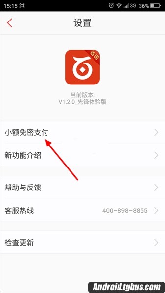 二、進入到設置界面之後,我們便會看到【小額免密支付】選項,點擊進入,如下圖所示: