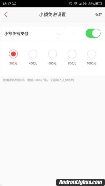 四、我們通過滑動橫條進行開啟,開啟成功後,系統會讓你設置金額,建議設置最小金額,防止損失,如下圖所示:
