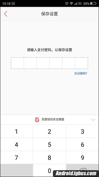 五、設置好後,我們點擊保存選項,此時系統會提醒我們輸入百度錢包的支付密碼,輸入正確即可開啟成功,如下圖所示。