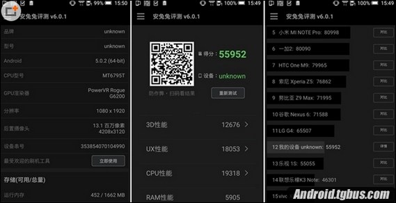 配置方面,HTC One X9搭載了主頻為2.2GHz聯發科MT6795T八核64位處理器,配置了2GB運行內存+16GB存儲內存和3GB運行內存+32GB存儲內存兩種組合,采用了5.5英寸的1080P全高清顯示屏,支持移動聯通雙4G,下面是HTC One X9具體的跑分性能測試。