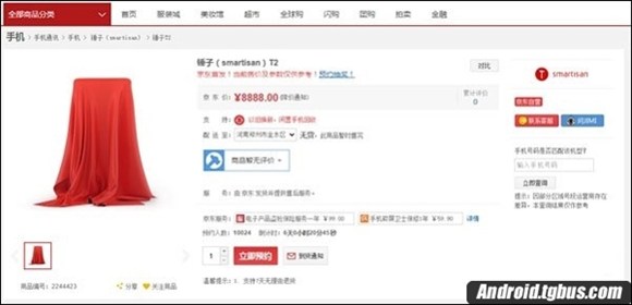 但是京東很坦白的表示,他們也不知道具體的參數跟價格,所以這次采用了盲約的形式,但“我知道你一定會來”。在預約頁面放出之後,現在京東的Smartisan T2產品頁面也出現了,除了價格顯示為8888元之外,其余沒有任何有價值的信息。