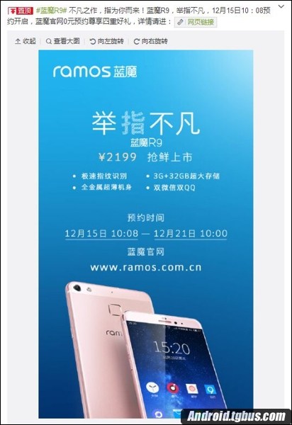 此外,藍魔同步更新了官網首頁內容,正式開通了年度壓軸新品藍魔R9的預約渠道,以及發布了藍魔R9的詳細配置信息。從微博的海報內容以及藍魔官網發布的信息看,藍魔R9與此前曝光的多張海報內容一致,不僅支持指紋識別技術,還采用了全金屬一體化設計風格,同時,還延續了藍魔MOUI系統獨特創新的雙微信雙QQ功能。如果您對這款手機感興趣的話,不妨去官網了解下詳情。
