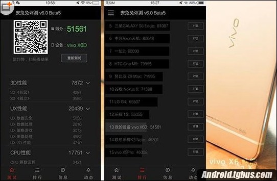 vivo X6安兔兔跑分成績揭曉