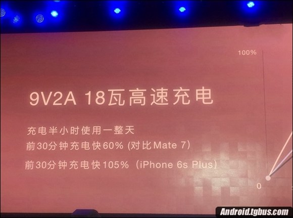 不過在此需要提醒大家的是,只有搭配華為Mate8原裝快速充電器對手機進行充電,如果使用其他的非原裝適配器是無法進行快速充電的,希望大家在後期使用的時候一定要注意。