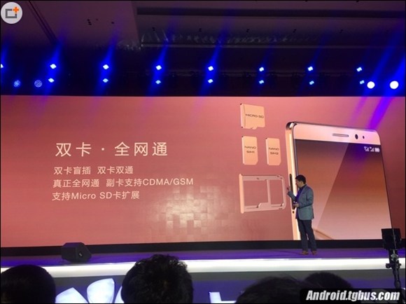 據悉,華為Mate8單卡槽雙卡位設計,雙卡槽都是nano-Sim卡,利於節省空間,且支持TF卡擴展,如下圖所示: