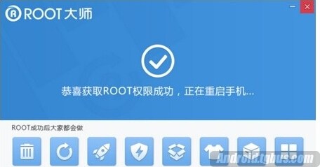 一般不超過5分鐘,就會顯示“ROOT權限已獲取”,查看手機上多了一個root大師手機版軟件就表示手機已經成功ROOT了,想ROOT的用戶快自己試試吧。