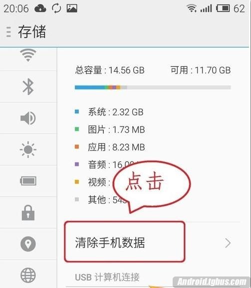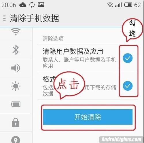 5、點擊清除手機數據