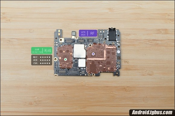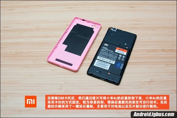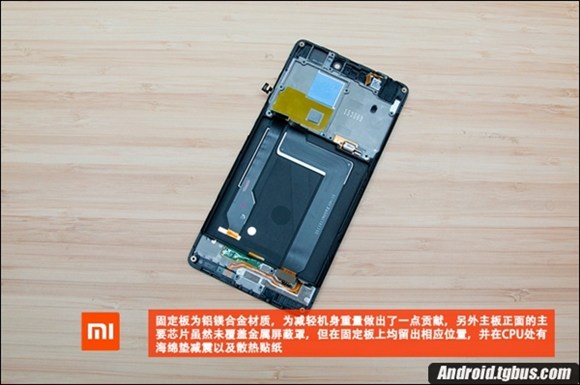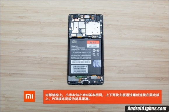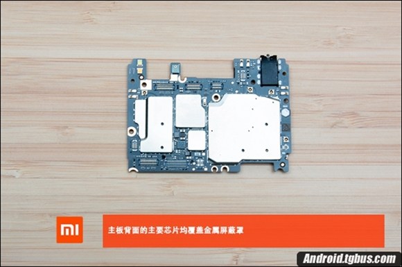 需要注意的是,小米4C為了減輕機身重量,固定板為鋁鎂合金材質,主板正面的主要芯片雖然沒有覆蓋金屬屏蔽罩,但在固定板上均留出了相應位置,骁龍808 CPU處有海綿墊減震和散熱貼紙。只是相比小米4i來說(容量3120mAh),小米4c的電池有些縮水,容量為3080mAh,下面就跟小編一起來看看小米4C拆機圖解吧。
