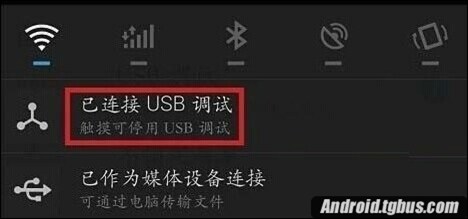 二、然後連接電腦,我們下拉通知欄就可以看到USB模式已經成功打開了,以及系統默認的MTP模式(電腦傳輸文件),如下圖所示: