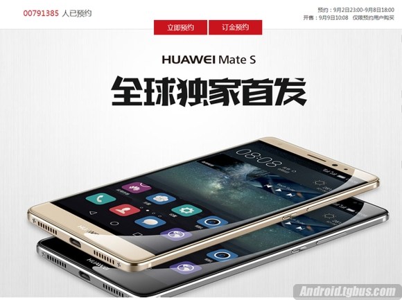 華為Mate S在歐洲地區的售價而已,國行價格還沒有揭曉,預計會在9月8日前後正式公布。但即便如此,華為商城已經開啟了Mate S國行版的預約工作,具體開賣時間為9月9日上午10點08分。