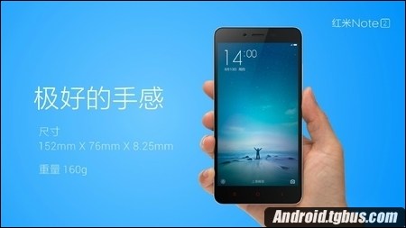 至於該機外觀究竟怎麼樣,據了解,紅米Note2采用一體式塑料材質背殼,提供粉、藍、黃、白、黑五種顏色可選,另外,用戶還可以加9.9元,選購任一顏色的原裝多彩後殼。機身三圍尺寸為152*76*8.25mm,重量為160克,據說手感非常不錯(但是好不好,也只有自己摸了才知道)。