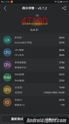關於ZUK Z1安兔兔跑分多少,盡管它搭載的是骁龍801處理器,但安兔兔總分依然達到了47000分以上。通過實際的使用來看,該機完全可以滿足大部分用戶的日常使用需求。