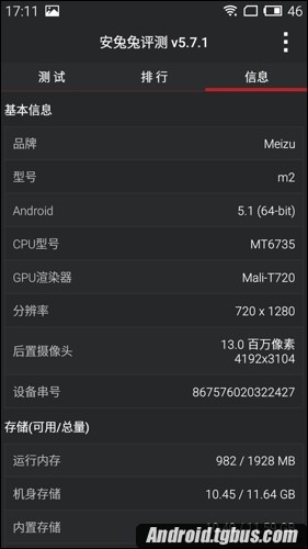 相比魅藍一代來說,魅藍2代配置上最明顯的提升就是內存從1GB提升到了2GB,單處理器的變化和魅藍note2類似,雖然加入了對電信網絡的支持,但性能略有下降。究竟降了多少呢?接下來跟小編一起來看看魅藍2處理器跑分情況吧。