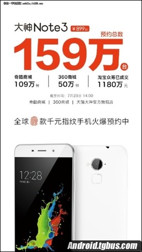 目前,大神Note3移動版售價僅為899元,是大神首款指紋識別手機,也是全球首款千元以下的指紋識別手機。大神Note3配備全新的指紋2.0+系統,0.5秒指紋解鎖,支持指紋拍攝、指紋支付等等指紋應用場景,大神Note3提供移動版和全網通版,售價分別為899元和1099元,7月20日開始接受預約,7月27日正式上市發售。如果大家對這款手機感興趣的話,現在就可以去預約了。