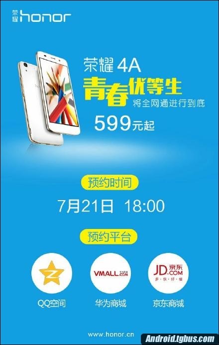 至於花粉們所關心的榮耀4A何時上市問題,據悉榮耀4A將於7月21日18:00正式在華為商城、京東商城以及QQ空間開啟預約預售,具體的首發時間還未公布,估計將於7月28日首發,後期巴士數碼會繼續為大家跟蹤,敬請關注本站最新報道。