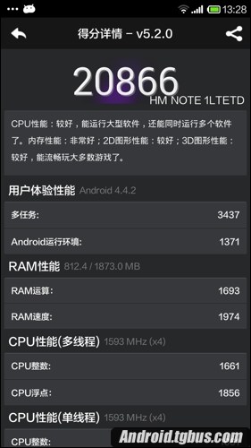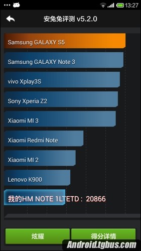 紅米Note增強版安兔兔跑分多少