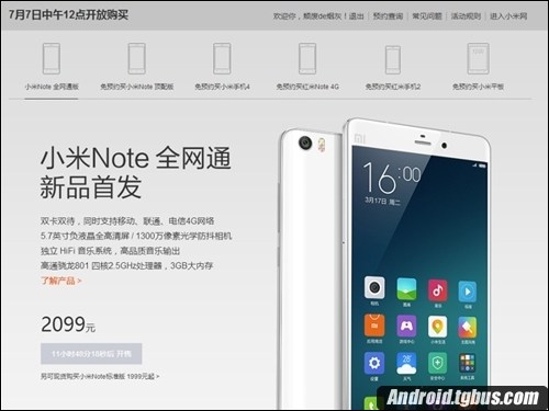 至於大家關心的價格問題,目前小米Note標准版已經降價至1999元,由於CDMA專利費用的問題,因此小米Note全網通的售價稍高,價格為2099元,如果您對該機感興趣的話可以去官網了解下詳情。