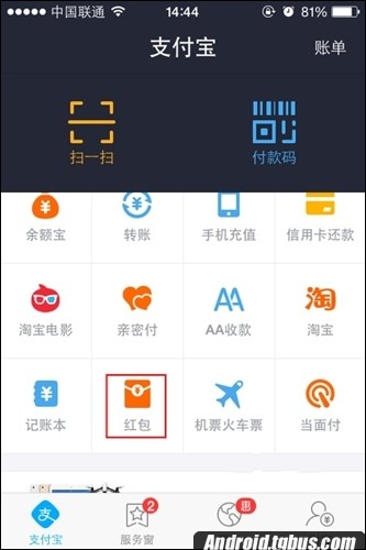 1、由於支付寶錢包版本升級的緣故,使得支付寶紅包入口沒有以前那麼明顯了,在其主界面的中間找到並點擊【紅包】即可進入。