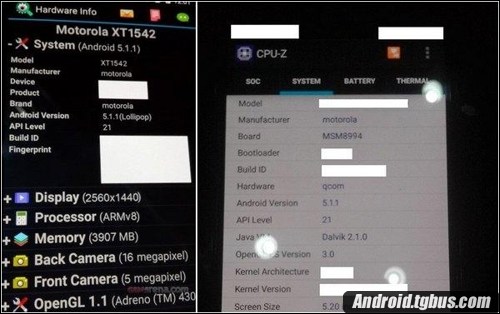 同時根據該網站曝光的信息來看,Moto X三代的核心規格可謂大幅飙升,不僅搭載有骁龍810處理器(MSM8994),而且還擁有4GB超大內存,據稱將提供32GB/64GB兩種存儲容量,搭載的是全新Android 5.1.1系統。