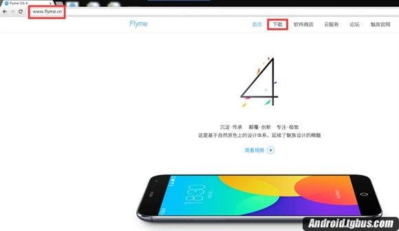 登錄Flyme官網www.flyme.cn,點擊頁面上方的“下載”)
