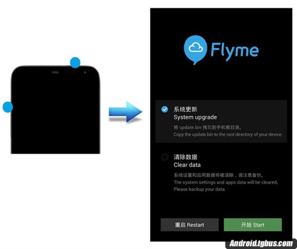 (降級、YunOS版固件與Android版固件互刷、已ROOT或安裝安全類軟件後,以及進行了Android簽名漏洞修補的用戶,請務必在升級時清除數據,否則可能會無法開機。清除數據會造成聯系人等個人資料丟失,用戶數據包括:聯系人、短信、應用等除存儲盤數據之外的所有手機內容,請務必做好備份同步。)