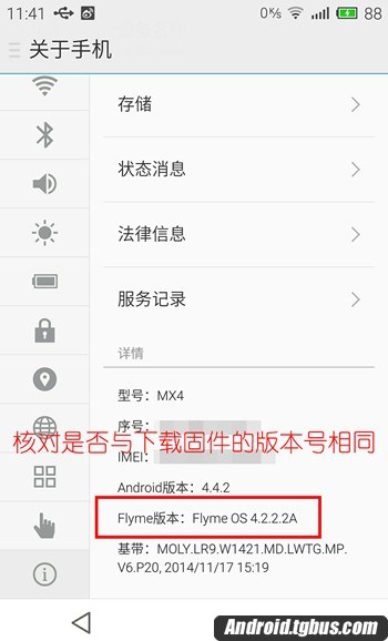 進入系統後,點擊桌面“設置”圖標進入後點擊“關於手機”即可查看當前版本號,如果與下載固件的版本號相同,即升級成功。