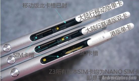 注:通過上面兩圖對比可以發現,索尼Z3港版背面比較干淨,沒有多余的LOGO,而行貨移動版除了有貼入網許可證還有移動的LOGO