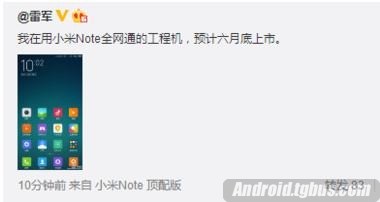 根據最新消息顯示小米Note全網通版將會在6月底正式推出,小米Note頂配版發布後也曾透露過同樣的信息。不過這次,雷軍還嗮出小米Note全網通版的界面截圖,圖片顯示該機正在使用電信4G網絡,同樣支持雙卡雙待。