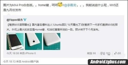 據了解,在該賬戶發布微博後不久,曾使用“Ubuntu團隊”微博ID的原博主(現名李嘉龍)出面證實前者所說並不屬實。但重點在於,原博主在否認圖中新機並非MX5的同時,還洩露了這款新機的發布時間,他表示:MX5還是9月份發布。