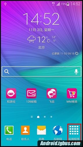 1、在待機頁面點擊“應用程序”。