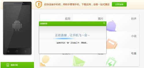 2、在電腦上打開360手機助手,360手機助手會自動連接手機並自動在手機上下載安裝驅動,以及360手機助手的手機端。