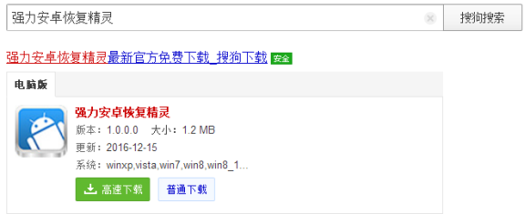 4、然後下載安裝強力安卓恢復精靈軟件。建議大家在強力安卓恢復精靈官網下載。http://www.qianglihuifu.com/