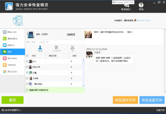 對於安卓手機用戶來說安裝軟件、卸載程序、恢復數據可能都避免不了需要把手機ROOT以後才能完成這些操作。今天分享給大家一個免root數據恢復的方法,此方法目前針對安卓手機微信聊天記錄恢復效果非常好。下面我們一起來看看強力安卓恢復精靈免root數據恢復應該怎麼操作吧。