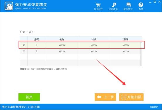 2.選擇:軟件將會把手機中的儲存空間檢測出來,請選擇手機照片所在的儲存空間進入文件掃描狀態。