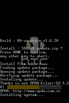 3.點擊你要刷的新rom後,會進入如下頁面,然後按Home房子鍵就開始自動刷機了;