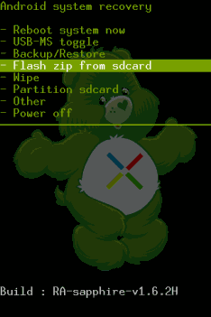 1.在recovery模式下,選擇第四項Flash zip from sdcard;