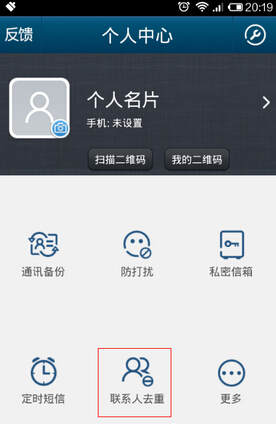 2、打開安裝好的QQ通訊錄,底部菜單選擇“個人中心”,點擊“聯系人去重”。
