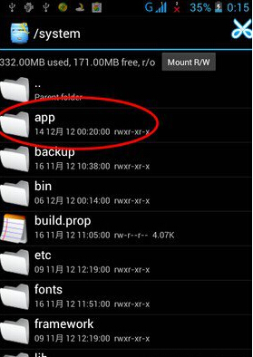 為了避免操作失誤而導致手機無法正常運行Re管理器默認是只讀的,即無法刪除文件。這就需要我們將其修改為讀寫,點擊上面的按鈕即可完成切換。