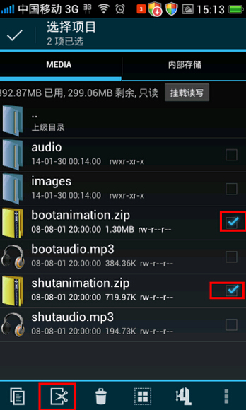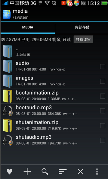 7、找到之前放到sd卡當中的bootanimation.zip文件。復制該文件放到,進入根目錄/system/media 完成之後,重新啟動手機。