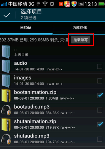 同樣的,如果你想要手機的手機動畫,那麼則下載一個zip格式的動畫包,將文件名命名為shutanimation.zip上傳到/system/media文件下面,然後按照上面的步驟進行操作即可。