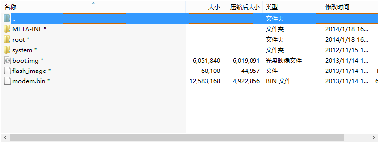 卡刷ROM包一般為ZIP壓縮文件,打開後可以看到:META-INF、system 這兩個文件,這樣就就可以確定ROM刷機包是卡刷包,如果需要進一步確認相關信息可參考文章。