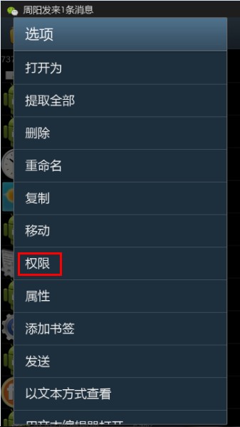 1、找到你所需要修改權限的軟件,長按。出現選項,然後選擇 權限 然後修改成你所需要的權限