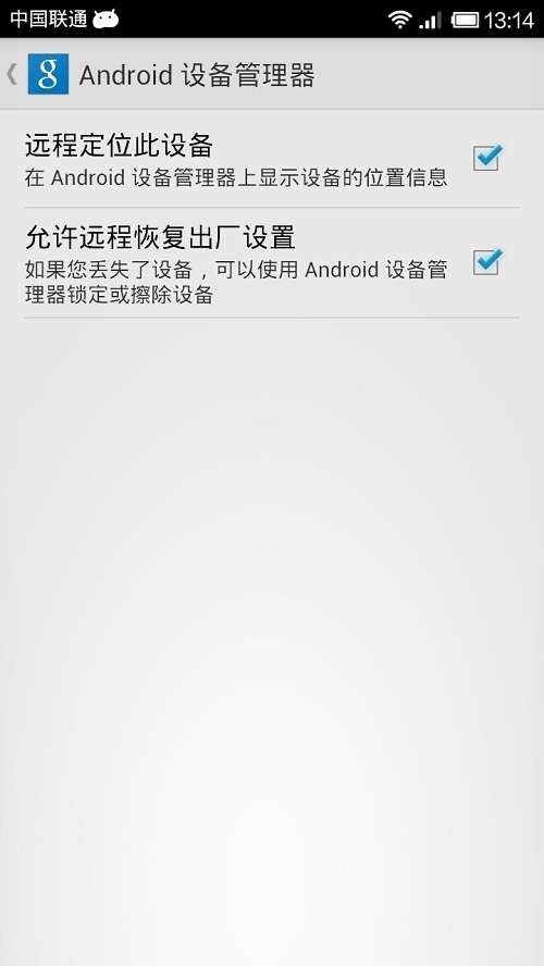 在功能表-設置-安全-設備管理器裡激活“Android設備管理器”