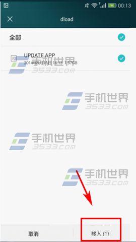 3)選擇需要移入的文件的位置,這裡以【SD卡】為例,選擇你需要移動的文件,點擊【移入】即可。(如下圖)